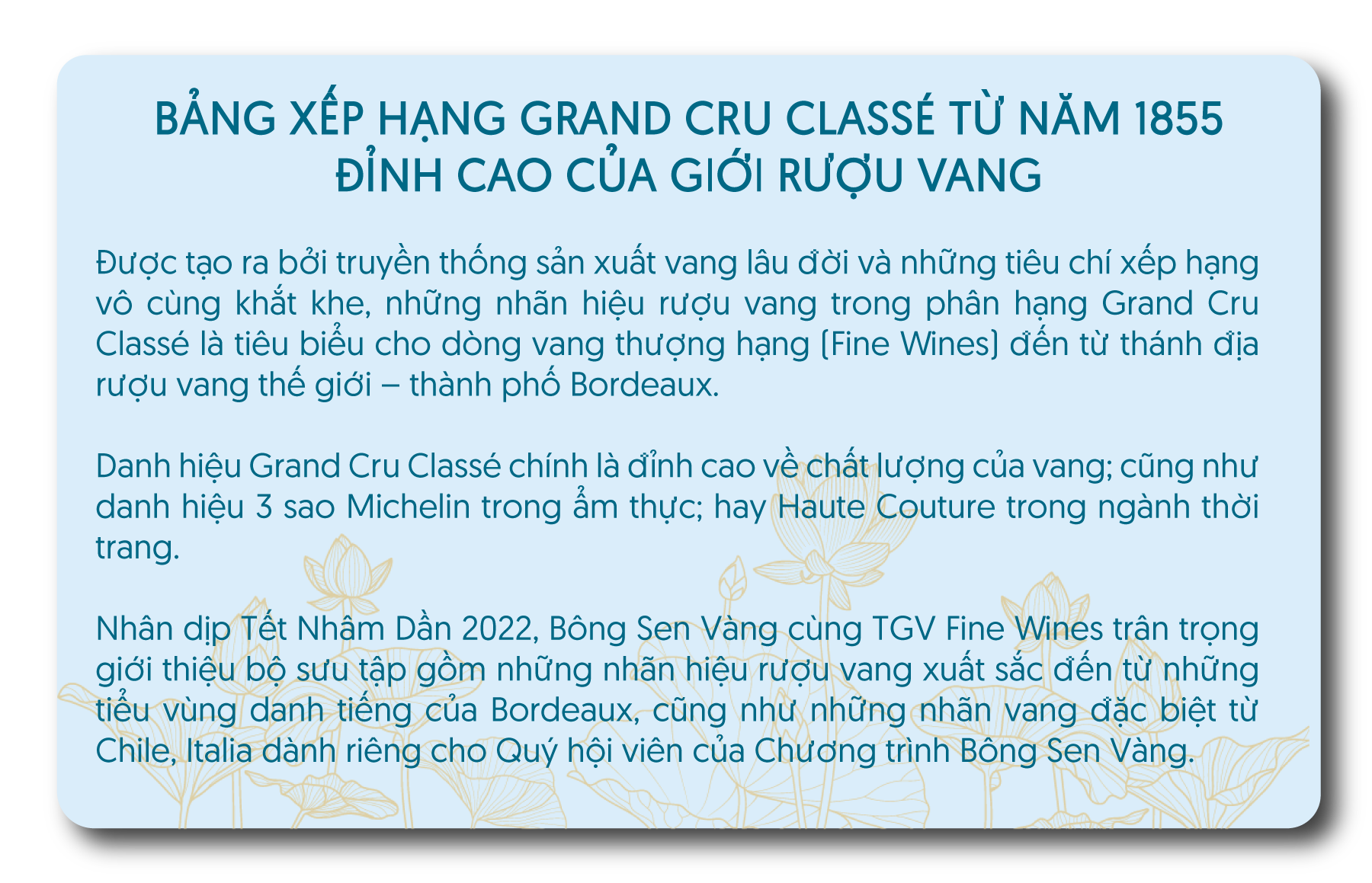 Hơn cả một lời cảm ơn và chúc mừng năm mới, món quà còn thể hiện sự tinh tế, lịch thiệp và tầm vóc của người tặng quà. Không có lựa chọn nào hoàn hảo hơn những chai rượu vang thượng hạng đến từ những nhà sản xuất vang lâu đời và danh tiếng hàng đầu nước Pháp.