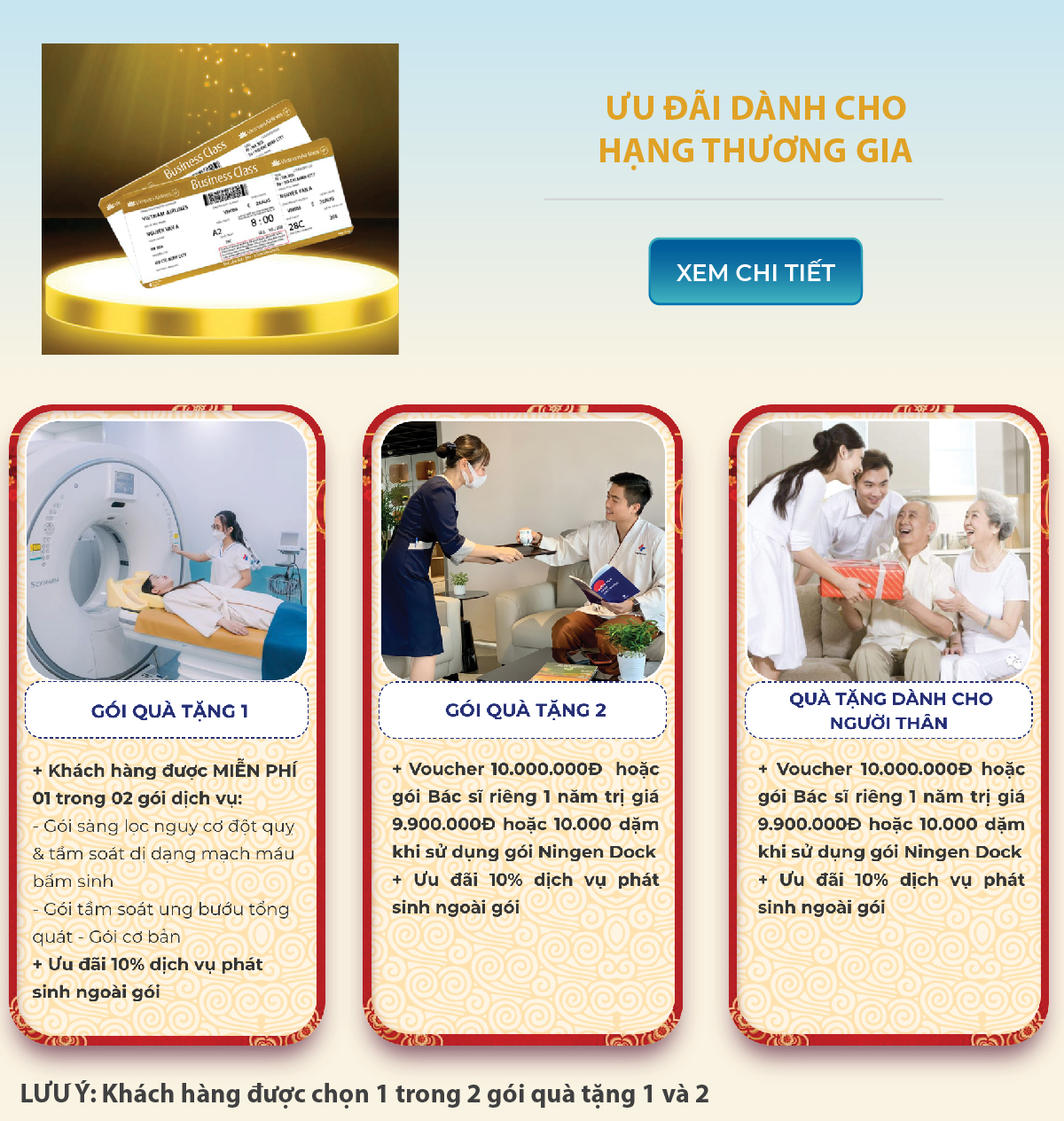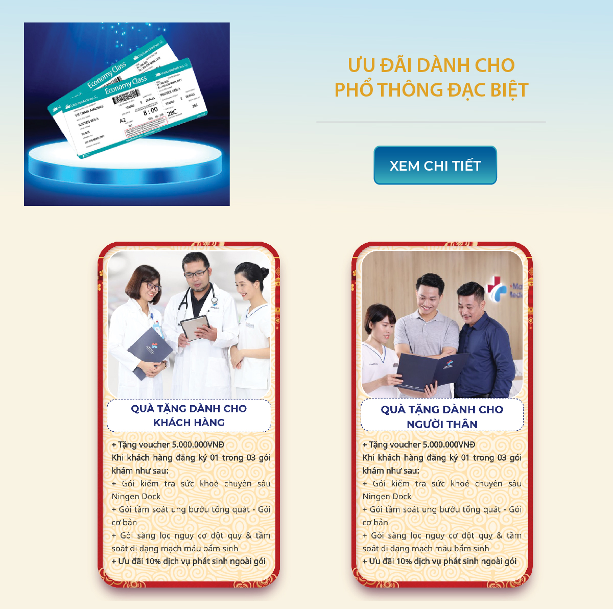 Hội viên Bông Sen Vàng là người Việt Nam/Việt kiều bay hạng Thương gia và Phổ thông đặc biệt trên chuyến bay từ 20/11/2023 đến 31/01/2024 của Vietnam Airlines từ nước ngoài về Việt Nam sẽ được hưởng ưu đãi chăm sóc sức khỏe tại Matsuoka (Mỗi hội viên được giới thiệu thêm 2 người thân cùng hưởng gói ưu đãi). Thời hạn sử dụng quyền lợi gói dịch vụ và voucher tặng kèm đến 31/03/2024.