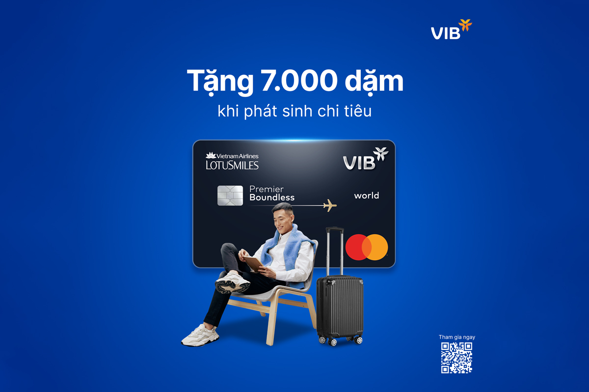 Từ ngày 15/05/2024 đến 31/08/2024, khi đăng ký mở mới thẻ tín dụng quốc tế VIB Premier Boundless qua các kênh truyền thông của Vietnam Airlines, Quý hội viên sẽ được tặng ngay 7.000 dặm thưởng, tương đương 1 vé máy bay một chiều Hà Nội/Hồ Chí Minh – Đà Nẵng.