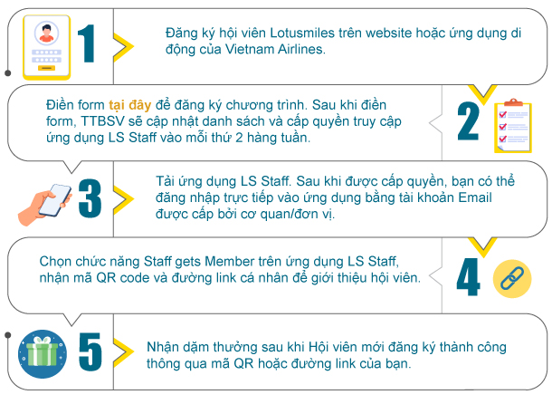 Là CBNV VNA Group khi tham gia chương trình giới thiệu người thân, bạn bè đăng ký hội viên Lotusmiles sẽ được hưởng ưu đãi: