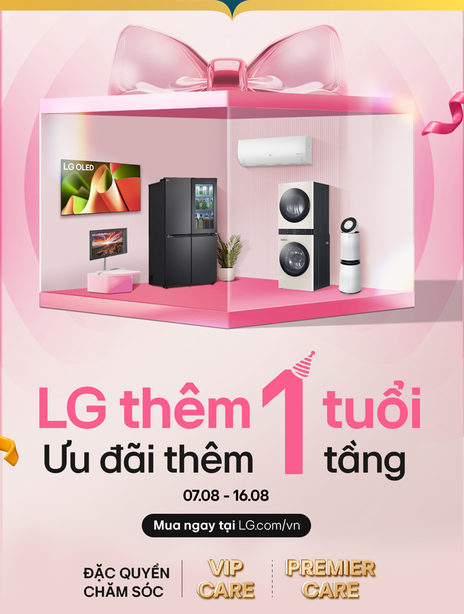 Đón chào tháng Tám cùng sắc Thu vàng rực rỡ, LG tưng bừng ra mắt chương siêu ưu đãi “Đặc quyền mua trước - Rước ngay ưu đãi” dành cho CBNV Vietnam Airlines với mức giảm giá lên tới 50% khi mua các sản phẩm tại trang web: www.lg.com/vn từ nay đến hết ngày 31/08/2024.