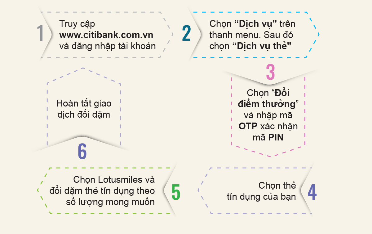 Hướng dẫn đổi dặm thẻ tín dụng sang dặm Bông Sen Vàng như sau:
