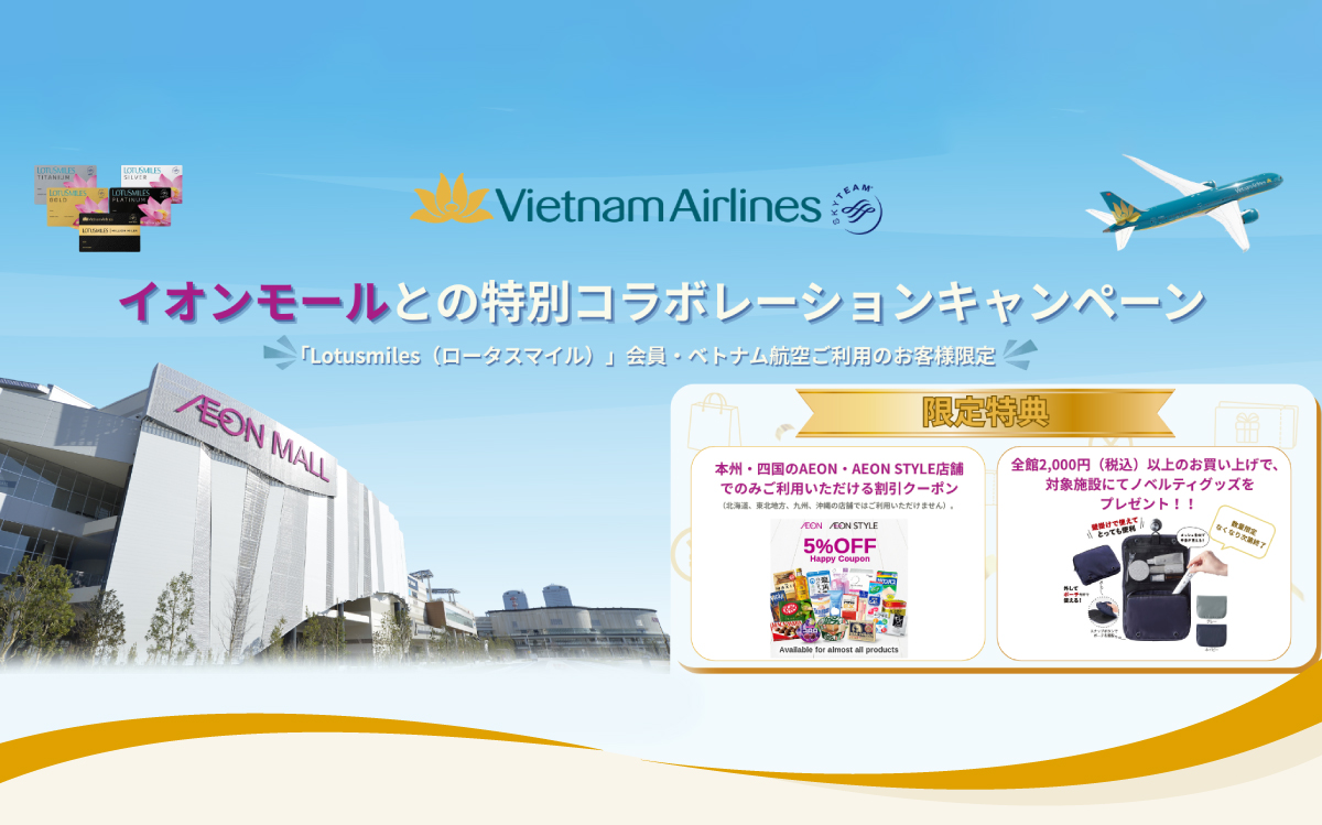 このメールはベトナム航空マイレージプログラム『ロータスマイル』に入会し、配信をご希望されている日本在住のみなさまに送付しております。